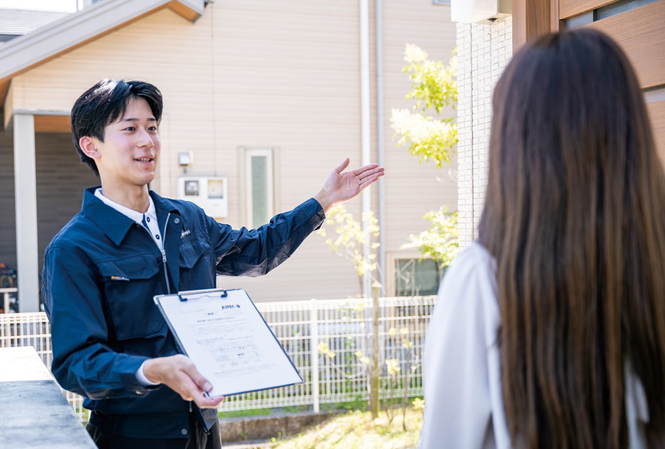 作業完了のご報告に加え、作業中にご迷惑をお掛けしていないかを確認します。