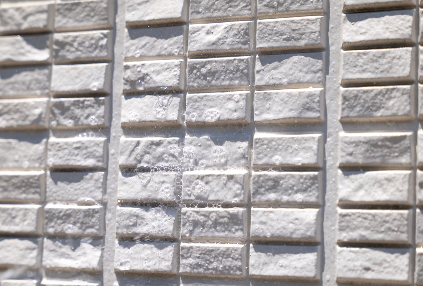 凹凸部分の汚れや、落ちないコケや藻などを、オリジナル洗浄剤で除去します。